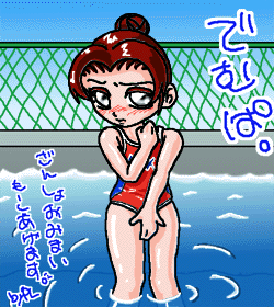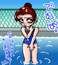 輝虹暦31年10月01日(第38回)から輝虹暦31年10月08日(第40回)までの間使用していた水着絵。 この時は、スイムスーツ(旧版なので、反青じゃなくって青色。水に弱い水着って……)だったのでこんな感じ。 前2枚と違ってディフォルメなしヴァージョン。そのせいで、2枚目と同じデザインにも関わらず(一部修正)細かい所まで表現出来ていたり。 ところで、この3枚の水着の元ネタって解った人いるかなぁ? アレンジ入れてる上に、2枚目&3枚目は実在しない色の組み合わせなんだけど。 |