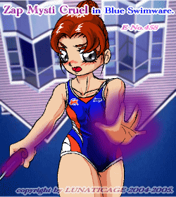 輝虹暦31年09月03日(第30回)での冒険王決定戦で使用した水着絵。 見ての通り、青の水着着用前提で色変えをしたんだけど、手違いで橙の水着のまま出場(笑) 因みに、色変えと云いつつ水着の細部は違ってます。ヒマな人は間違い探しがてら(笑) |